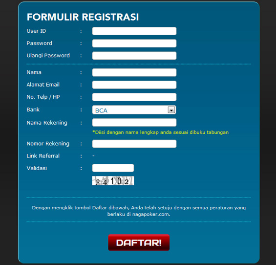 Sebelum anda bisa bermain di www.nagapoker.com. Anda diharuskan mempunyai USERID. Ada ketentuan-ketentuan yang harus anda ketahui sebelum membuat userID www.nagapoker.com :